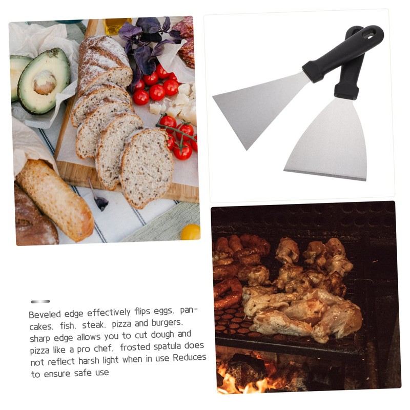 STOBAZA 2Pcs Stainless Steel Cooking Spatula with Plastic Handles Multi Function Kitchen Tools for Steak Teppanyaki BBQ and More