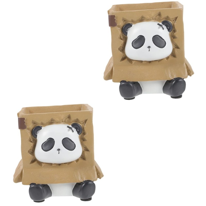 STOBOK 2pcs Desk Stationery Holder Panda Style Resin Pen Cup Multi-functional Pencil Pot for Desktop Makeup Tools