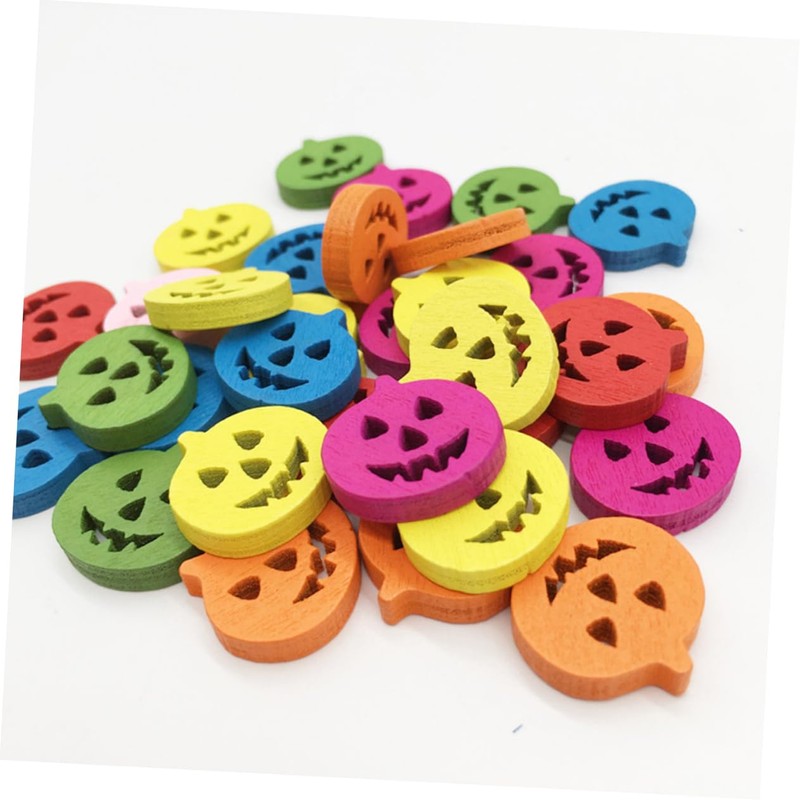 STOBOK Natural Wood Pumpkin Buttons 100 Pieces Mixed Patterns Fine Edges Ideal for DIY Projects Sewing