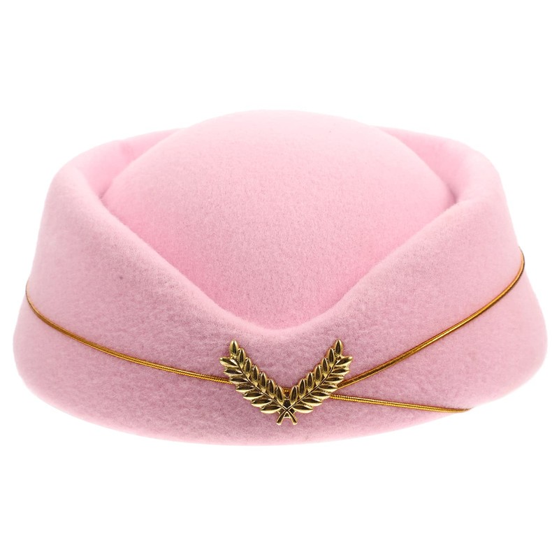 STOBOK Women Air Stewardess Hat Woolen Flight Attendant Hat Stewardess Cap for Costume Cosplay Accessories Pink