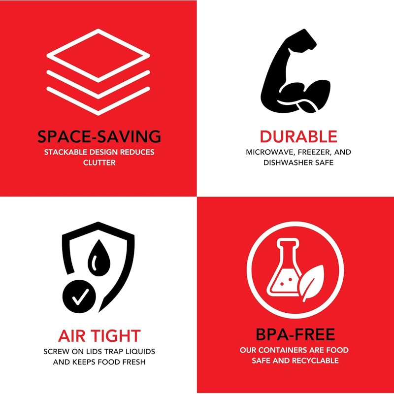 - Leak Proof: Designed with airtight, twist on lids, our plastic freezer containers with lids provide a solution for sauces, soups, and other foods without the worry of spills or mess. The lid also keeps your food fresh for longer, minimizing waste!