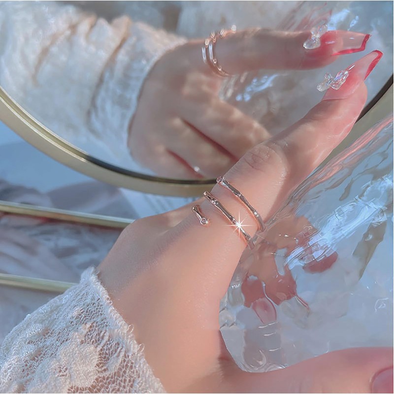 Stocking Stuffers Holiday Outfits for Women 2024 Bamboo Ring for Women Rhinestone Knuckle Ring Silver Wrap Ring Open Adjustable Joint Finger Ring Rose Gold Bamboo Statement Ring Birthday Gifts for Teens Gold