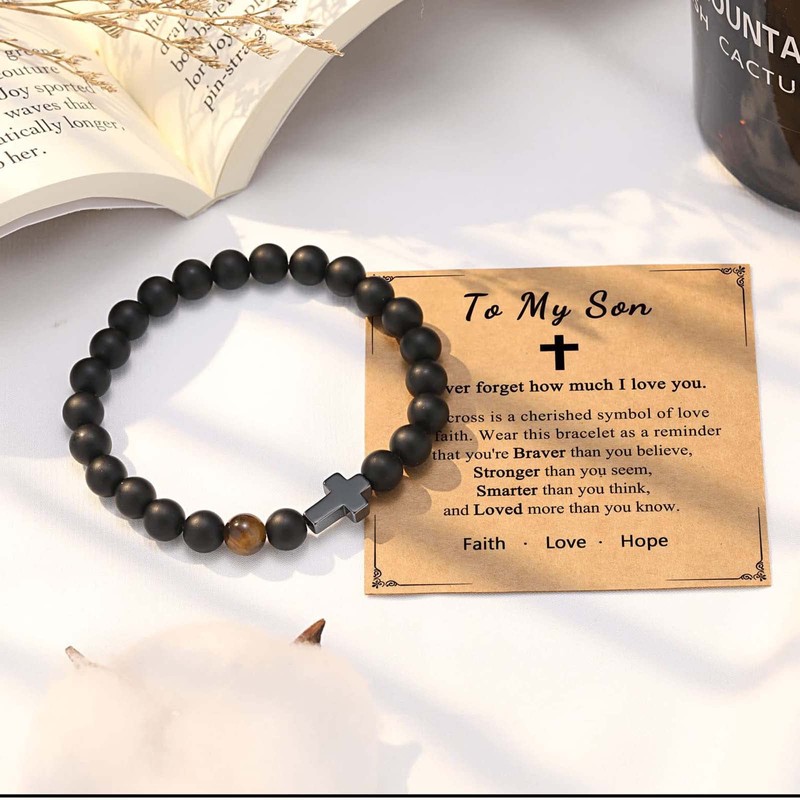 - Stretchy Beaded Bracelet : The cross bracelet, a symbol of love and redemption, can give you strength in the face of all difficulties at any time.
