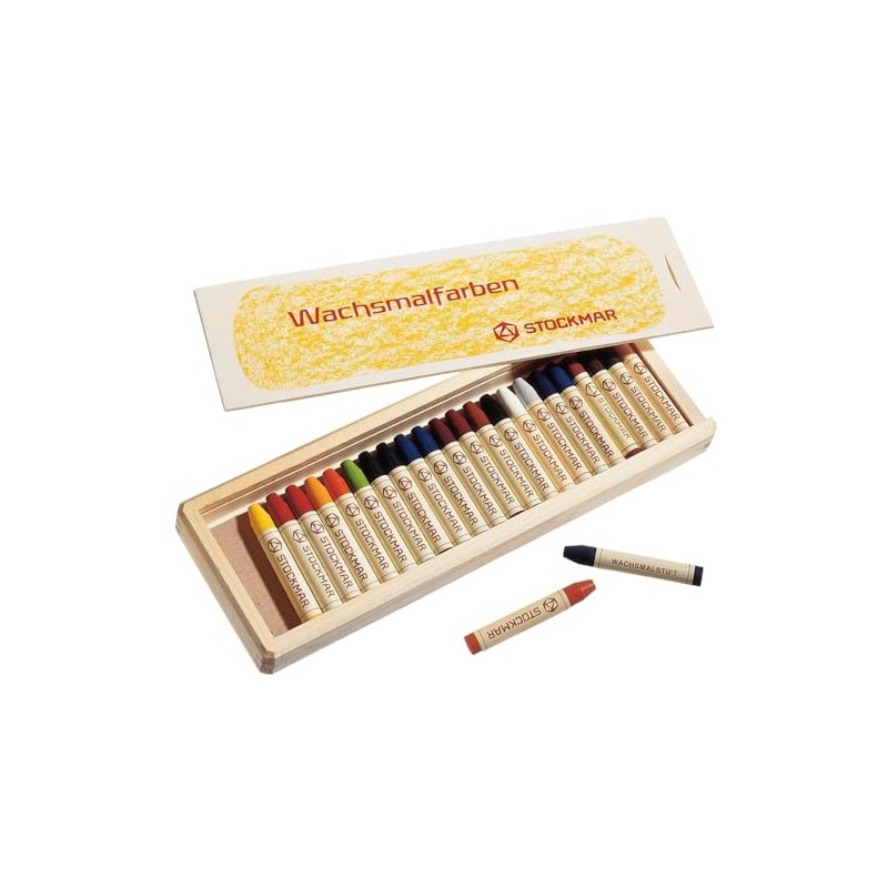 - VIBRANT COLOR EXPERIENCE: 24 of STOCKMAR's radiant colors are available in a wooden case with scraper.