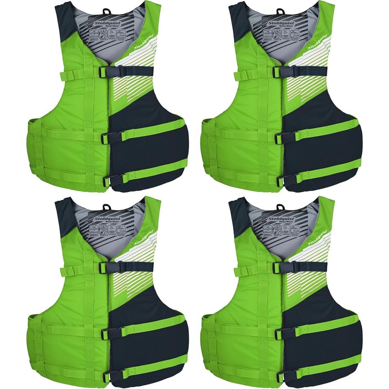 Stohlquist Universal Fit Adult Life Jacket PFD (4 Pack) Coast Guard Approved PFD, Life Vest for Men and Women 90+ lbs, Lightweight Neoprene and Adjustable, Ideal for Boating, Kayaking & Water Sports