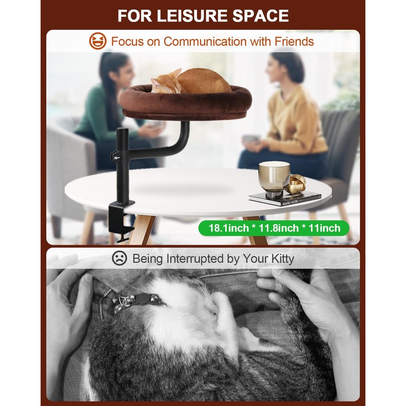 - Stay Close, Interruption Free - Have you experienced your cat suddenly appearing and lying on your desk, interrupting your work? You either watch helplessly or move them aside. Our fluffy elevated cat bed perfectly solves this problem, allowing you to maintain close interaction with your cat while working without any disturbances.