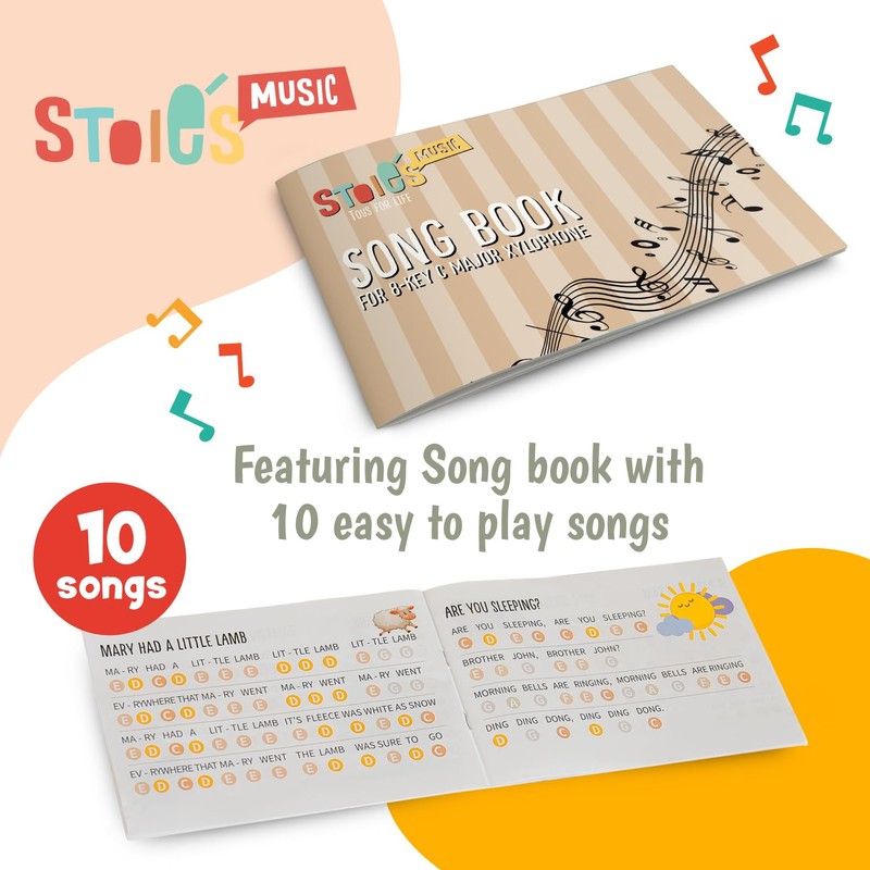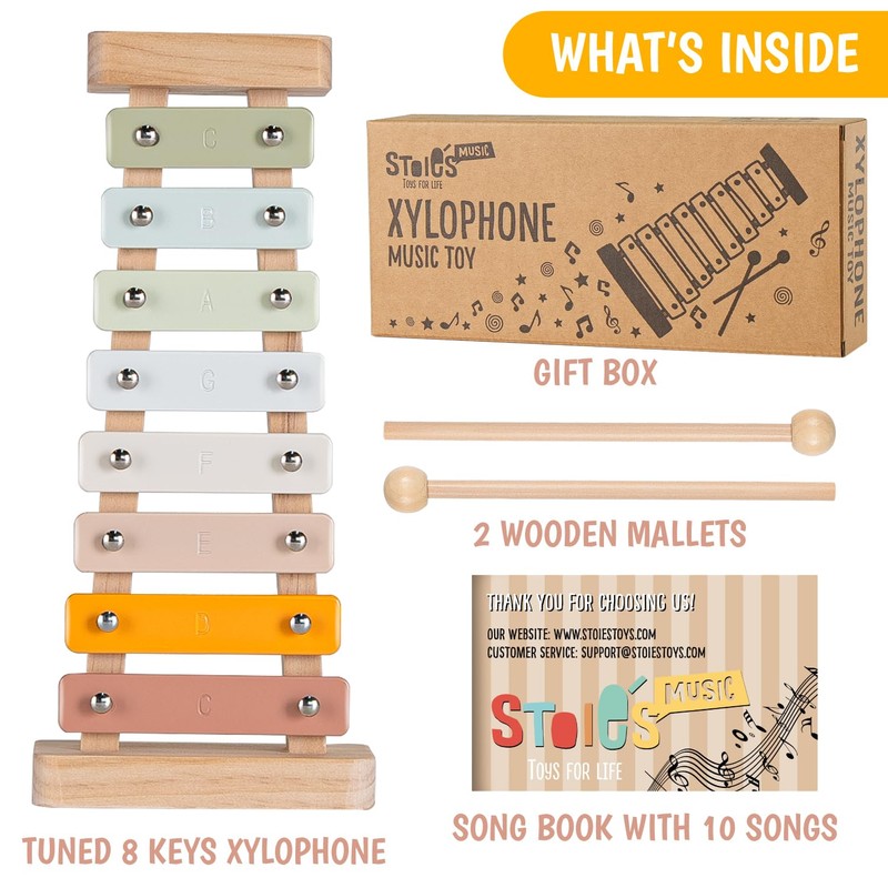 - Perfect gift: kids xylophone instrument comes with 2 mallets, allowing kids to play together and experiment with different playing techniques. It includes a songbook with 10 popular songs for kids to learn and play, providing guidance and expanding musical repertoire. Bringing joy, entertainment, and educational benefits toy xylophones for toddlers can be an excellent gift for birthdays or holidays