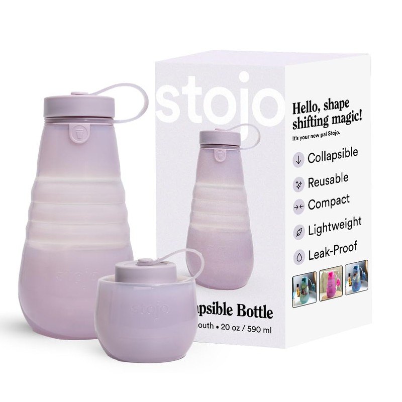 STOJO Collapsible Sports Water Bottle - Leak-Proof Reusable Silicone Travel Cup for Hot & Cold Drinks - Microwave & Dishwasher Safe - AS SEEN ON TODAY SHOW - Parent (Translucent Lilac)