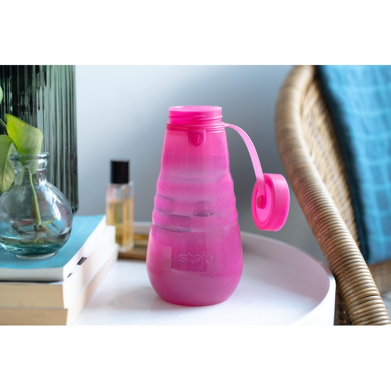 - Stay hydrated effortlessly with the Stojo collapsible water bottle. Collapse it down to just 3.3 inches when empty and attach it to your bag with ease and its see-through design allows you to see your beverage inside - great for those that like to add a little flair to their drinks!