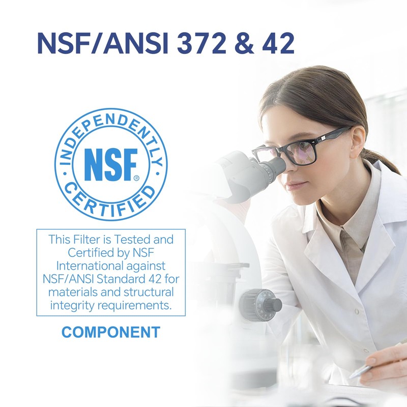 - Tested and Certified by SGS: Crafted from high-quality, BPA-free, and lead-free materials, our water filter for fridge complies with NSF/ANSI 372 & 42 American National Standards, tested and certified by SGS. Providing peace of mind for your household's safety and health.
