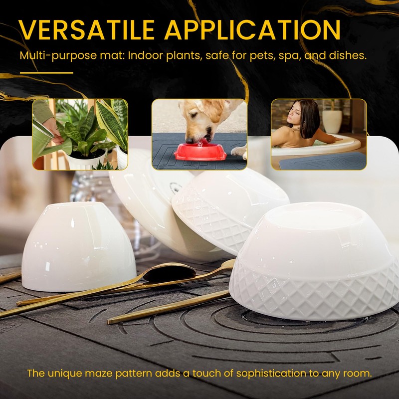 • 🐶 STONE MAT FOR DOG BOWLS - Your pets are creating a daily mess? Maze Oasis is water absorbing stone mat with unique flow technology.