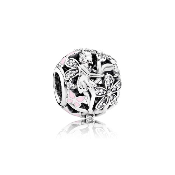 Shiny elf charm made of sterling silver with cubic zirconia and light pink enamel