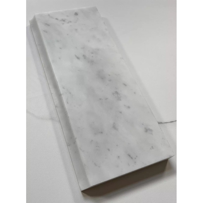 Premium Grade White Carrara Marble Baseboard Tile. Italian Bianco Carrera White Venato Carrara Honed 5 x 12 Base Board Wall and Floor Tiles are perfect for any residential / commercial projects. The Carrara White Marble 5x12 Baseboard Molding Tile can be used for kitchen backsplash, bathroom flooring, shower surround, dining room, hall, etc. Our timeless White Carrera Marble Skirting Mouldings with a large selection of coordinating products is available and includes hexagon, herringbone, basketweave mosaics, 12x12, 18x18, 24x24, subway Tile, borders, chair rails, and more.