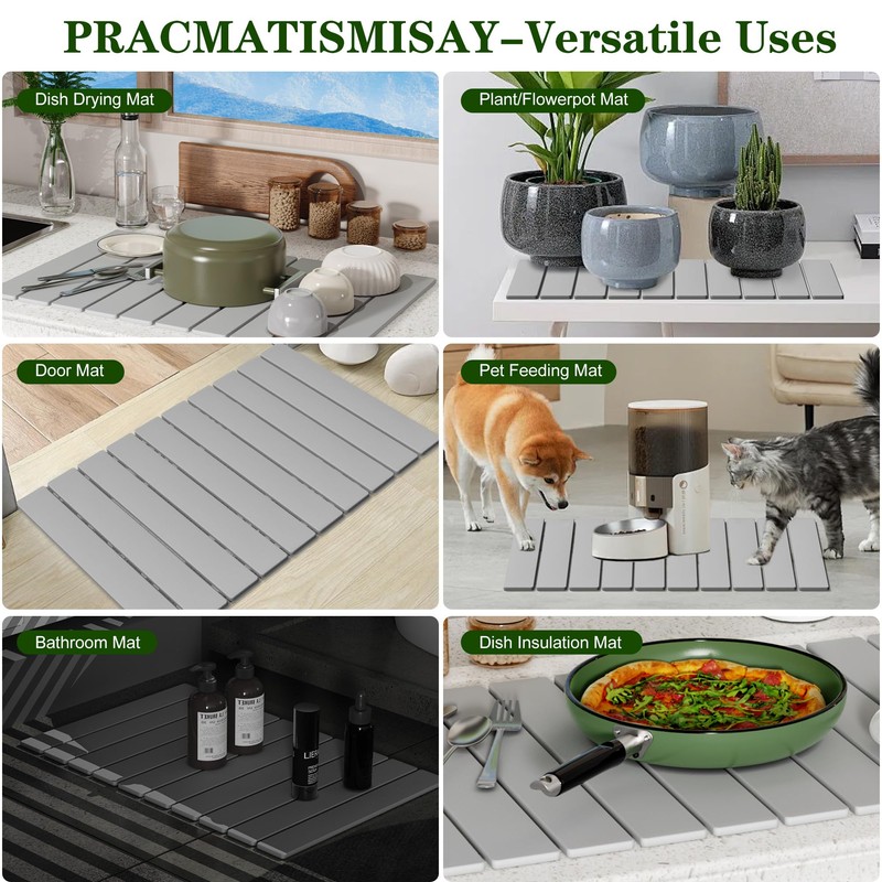 - 【DIATOMACEOUS EARTH COLLAPSIBLE DISH MAT 】Crafted from natural diatomaceous earth, this stone drying mat offers unmatched durability and rapid water absorption. This mat is also heat-resistant and slip-proof,which can be used as a heat-proof trivet.