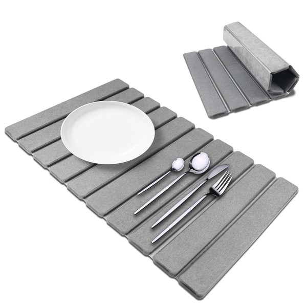 Stone Dish Drying Mat for Kitchen Counter, 24"x16" Collapsible Large Stone Dish Drying Mat Eco-Friendly Absorbent Diatomaceous Earth Mats for Cups Dishes Bottles(Medium grey)