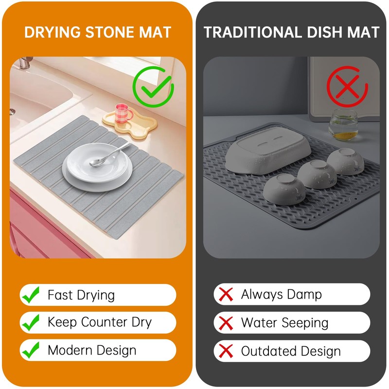 - Versatile Multi-Purpose Use: Instant drying mat for drying dishes, cups, or utensils in the kitchen. Doubles as a heat-resistant mat, bath mat, pet feeding mat, plant tray, even an outdoor mat for your porch, an ideal gift for mother, wife, girlfried and your family