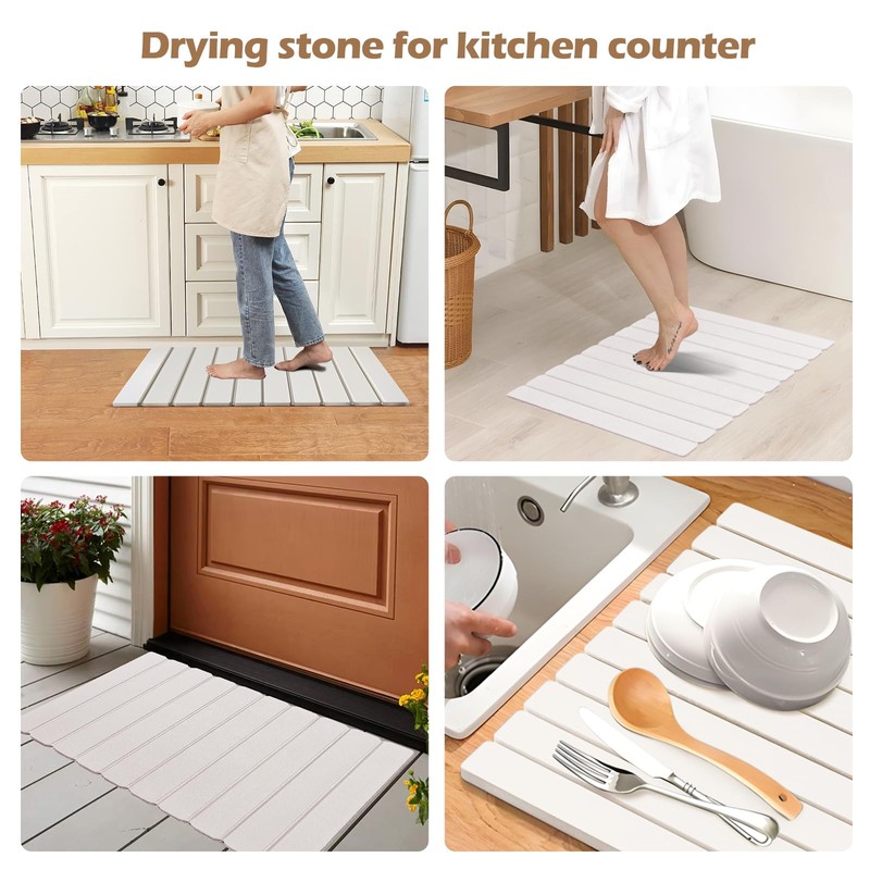 Stone Drying Mat for Kitchen Counter,Kitchen counter stone dish dry mat, 24 "(L) x 16" (W) quick-drying absorbable foldable eco-friendly diatomaceous earth vegetable dry mat, stone dish dry mat