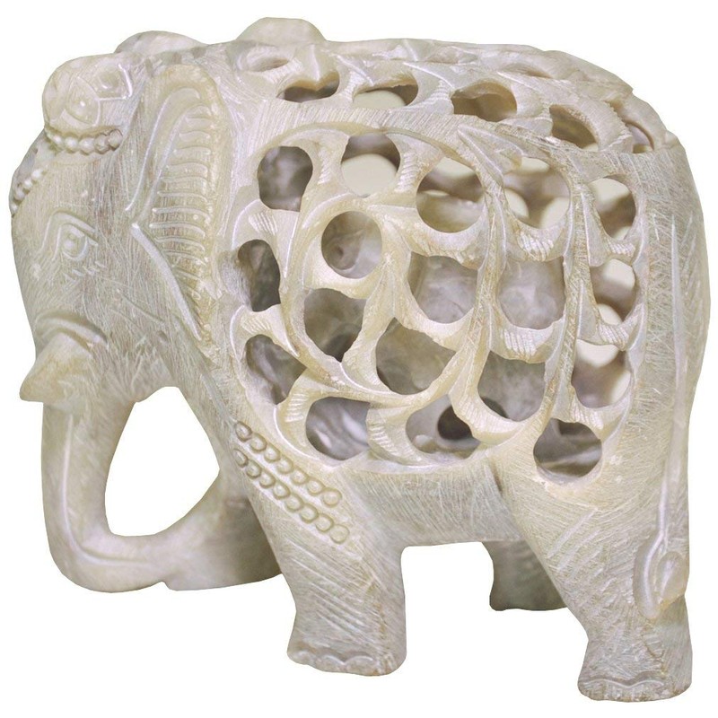 - An intricately hand-carved elephant with another intricately hand-carved baby elephant inside!. The mother elephant figurine has been handmade in traditional Indian jali work or openwork carving (intricate latticework having a pattern of openings). The inner baby elephant is a solid stone carving