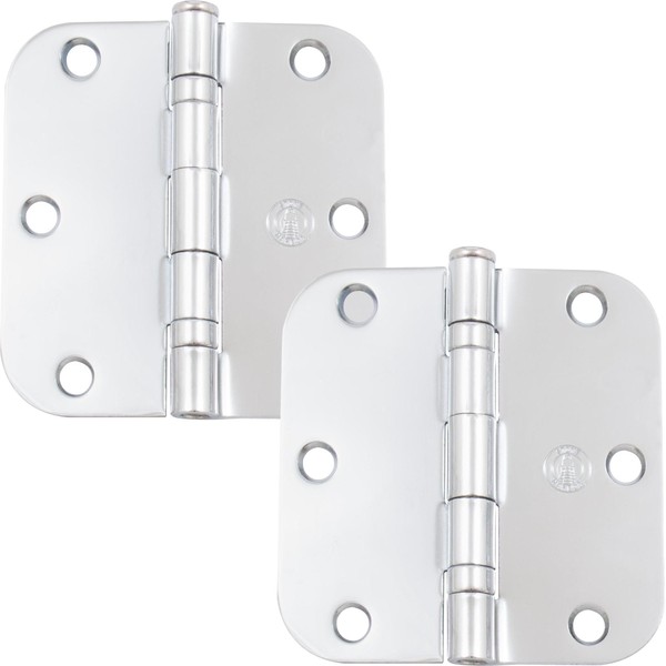 Stone Harbor Hardware 3-1/2" Ball-Bearing Door Hinges, 5/8" Radius Corner, Polished Chrome, 2-Pack