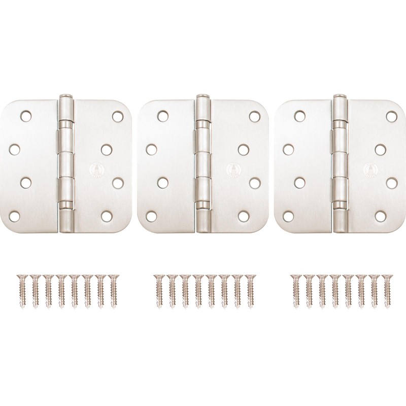 Stone Harbor Hardware 4" Ball-Bearing Door Hinges, 5/8" Radius Corner, Satin Nickel, 3-Pack