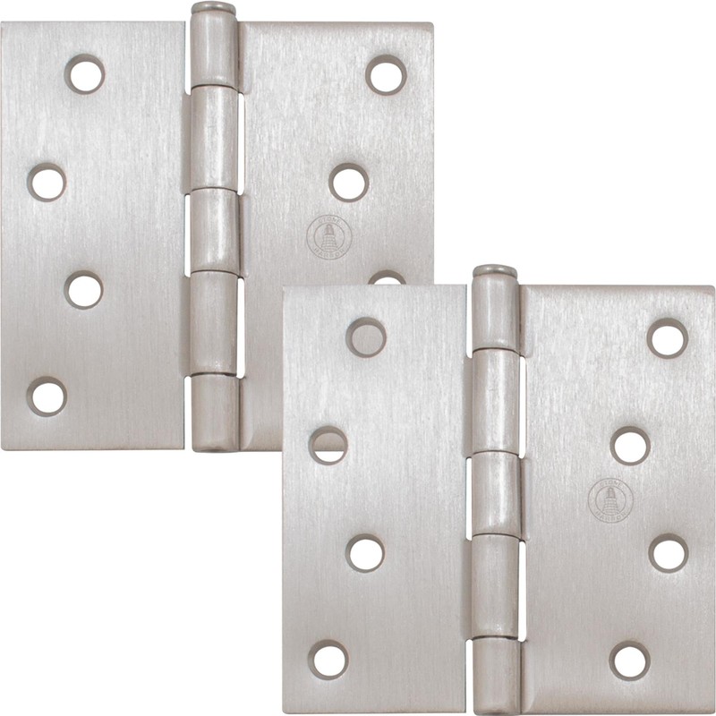 Stone Harbor Hardware 4" Door Hinges, Square Corner, Satin Nickel, 2-Pack