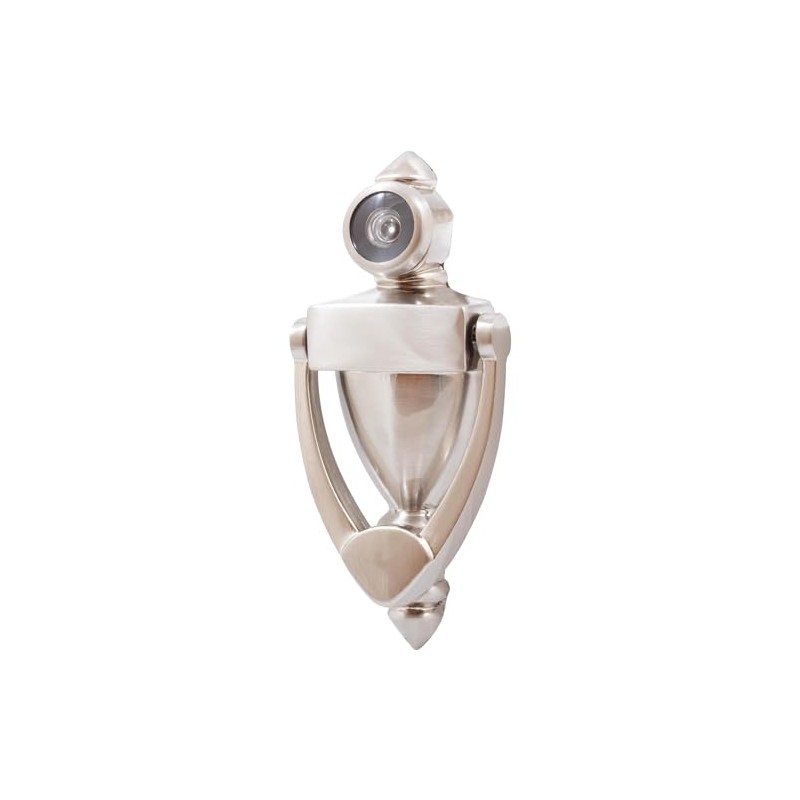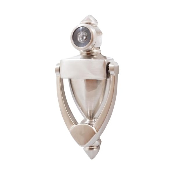 Stone Harbor Hardware Door Knocker with 180° Viewer, 5 Inches, Satin Nickel