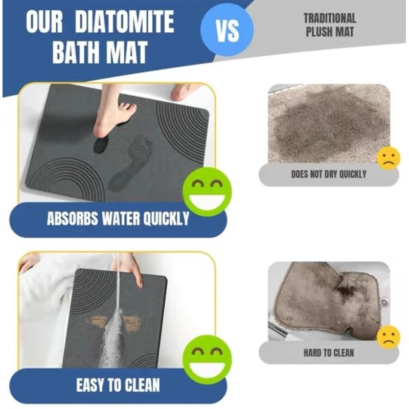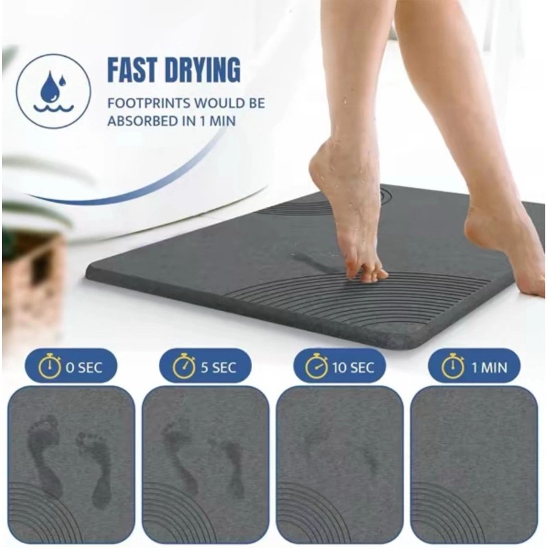 Stone bath mats are highly absorbent, drying quickly in less than a minute. When you step out of the bathroom, don't worry about wet feet and slippery floors. Don't worry about being wet for a few days like the traditional mat. Enjoy having a clean and dry surface.