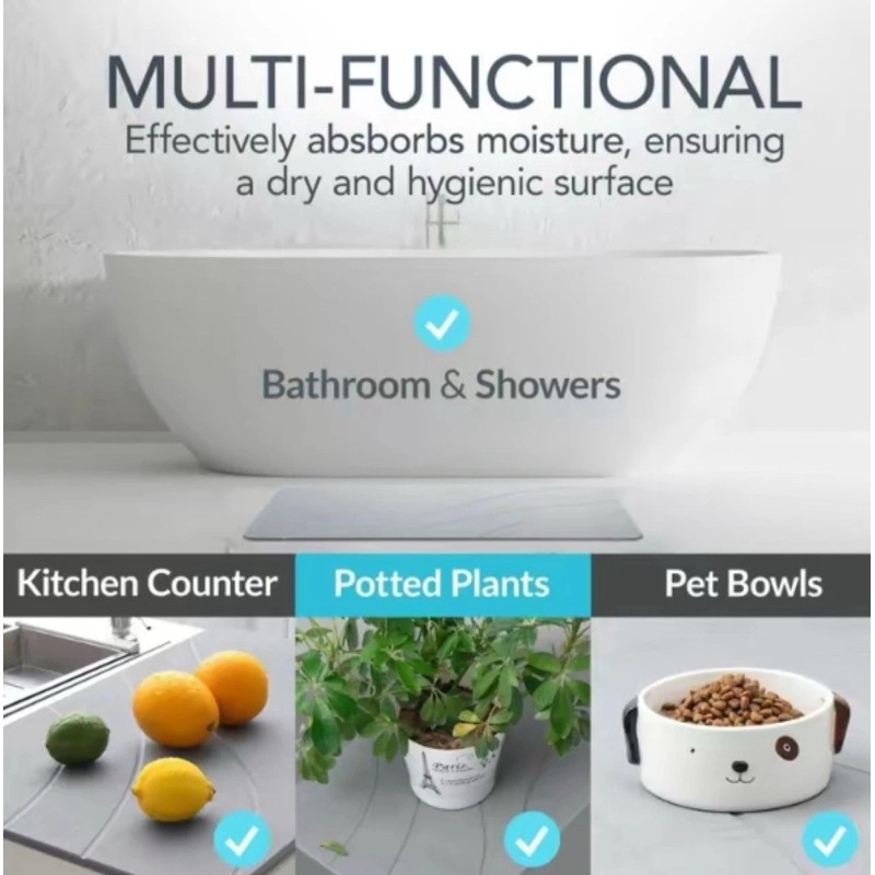Our stone bath mats for bathroom can be used in various areas of your home. They're not limited to the bathroom; they also serve as great kitchen drying mats, entryway mats, dish rack mats, pet bowl mats and poolside mats.