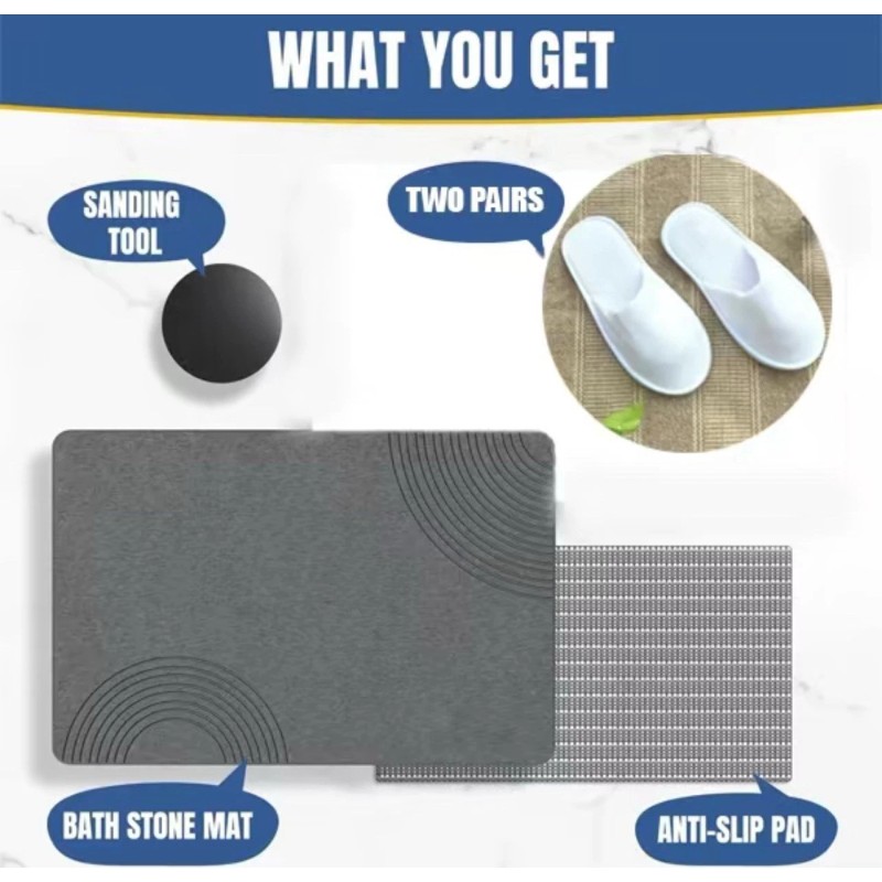 • Set Includes: Bath Mat, Anti Slip Pad, Two Pair slippers, Sanding Tool