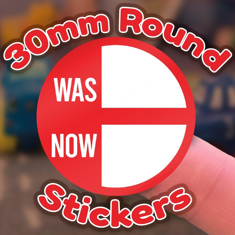 144 SALE PRICE POINT WAS NOW REDUCED SHOP STICKERS 30mm Amazing value with these colourful paper sale price stickers, perfect for shop fronts to displace product prices. Sticker Diameter 30 mm