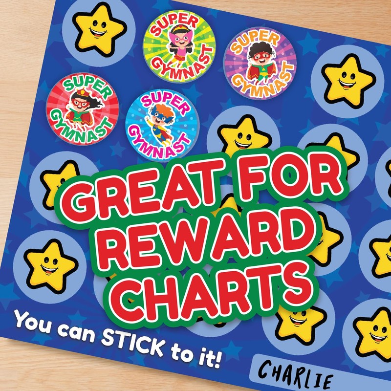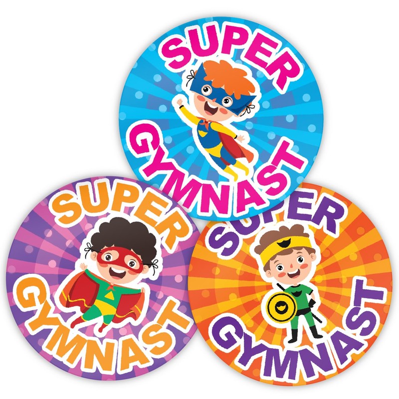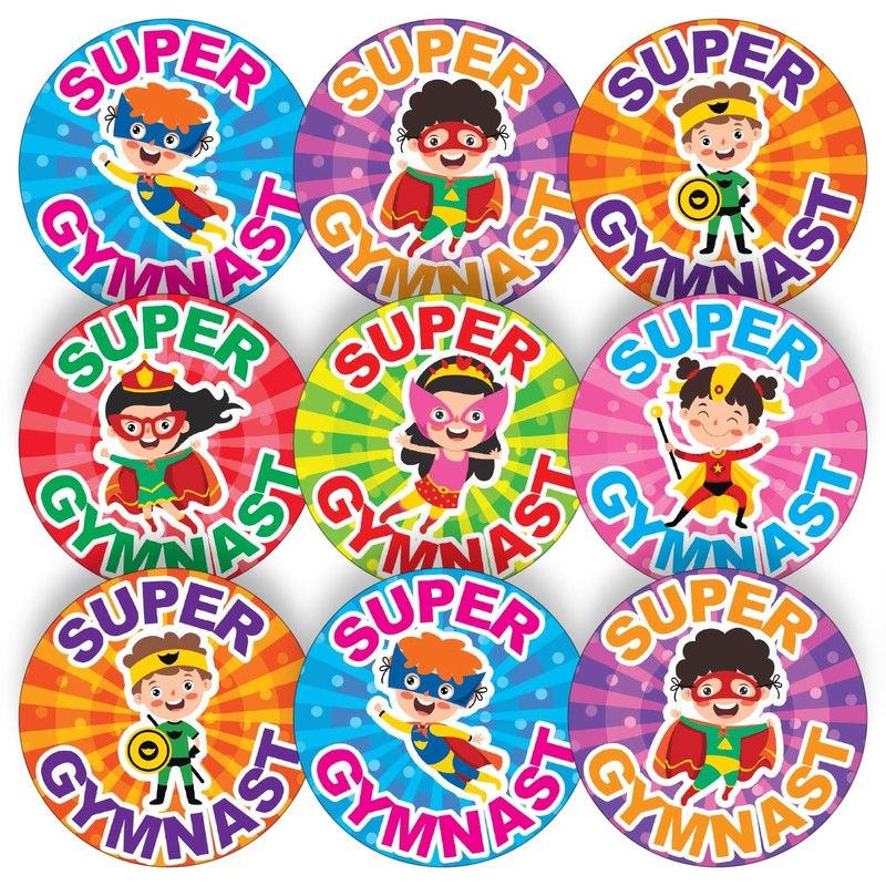 Stone Melon Reward Stickers 144 Gymnastics Super Hero Stickers 30mm Round Awards Nursery School Teachers Parents Children Kids