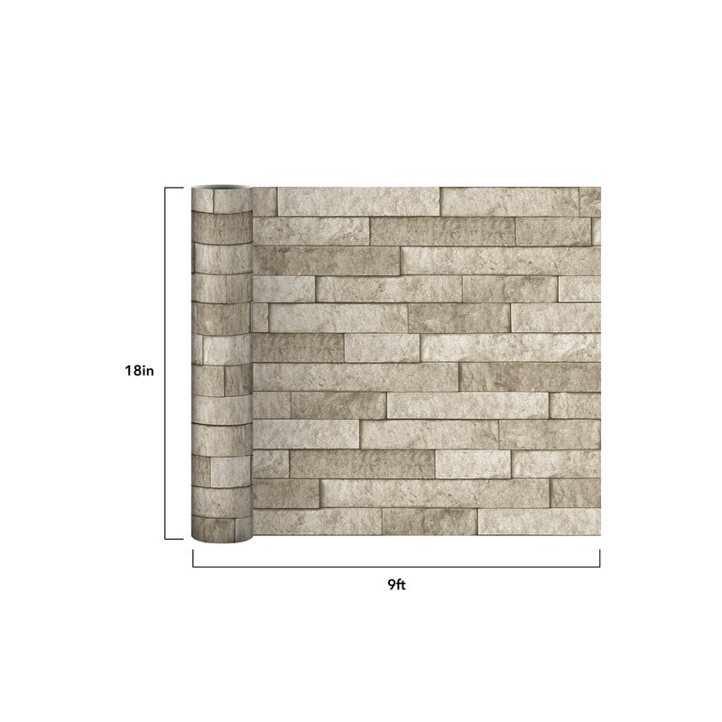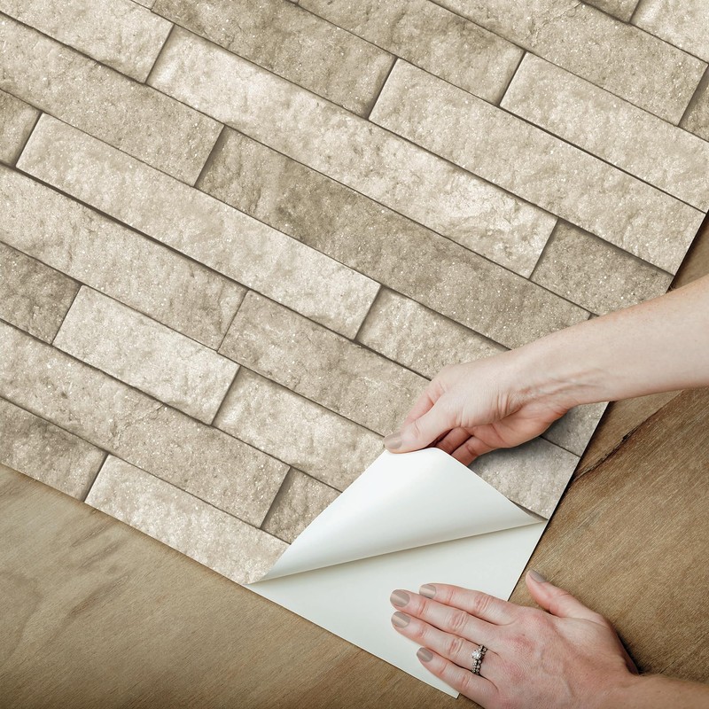 - Roll of natural grey and taupe stone peel and stick backsplash