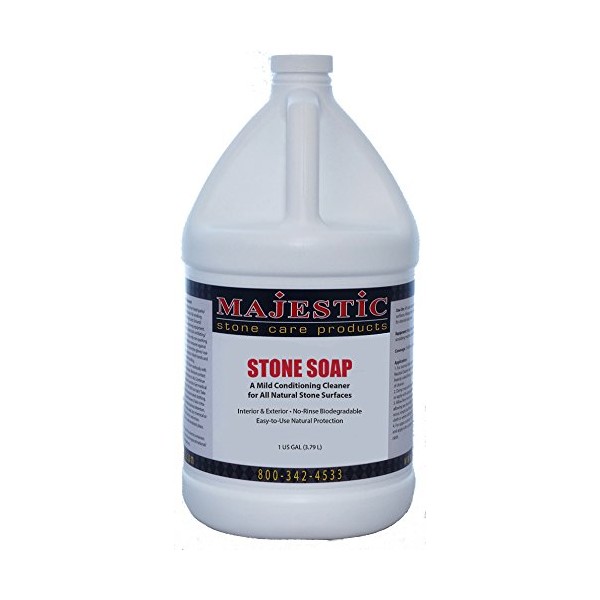 Stone Soap is an all natural, biodegradable, highly concentrated cleaner/conditioner designed for daily cleaning and conditioning of all natural stone surfaces. Stone Soap is safe and easy to use on marble, granite, limestone, travertine, terrazzo, agglomerate, slate, unglazed ceramic, porcelain, terra cotta, saltillo and concrete. Regular use provides a dirt repellent barrier at the surface, prevents hard water damage, brings out the natural color and brilliance of the stone and improves slip resistance on polished surfaces. Use on all natural stone surfaces.
