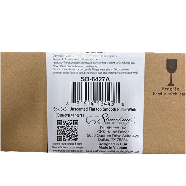 The Stonebriar Tall 3x3 Inch pillar candle is designed for long burning at up to 40 hours. With a clean white color and unscented aroma, this pack includes 6 candles perfect for adding ambiance to any room in your home. Made by Stonebriar, known for their quality home decor products, these candles are sure to create a warm and inviting atmosphere in your living space.