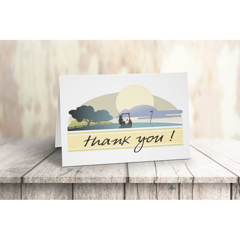 Enjoy this elegant golf theme thank you note card. Customize the inside of this card and let us do the printing on the inside for you. A custom card boxed set makes it easy and convenient to send cards out in the mail. These are perfect for your golfing friend lovers.