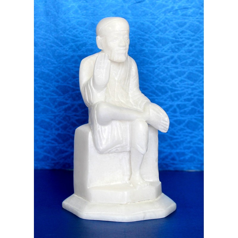 StonKraft 6 Inch Indian White Marble Stone Saibaba, Sai Ram, Sairam, Sai Baba Statue Murti Idol