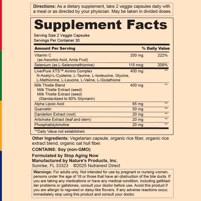 Stop Aging Now Stop Aging Now - Liver Support Supplement - with Milk Thistle - 60 Vegetable Capsules for Men and Women