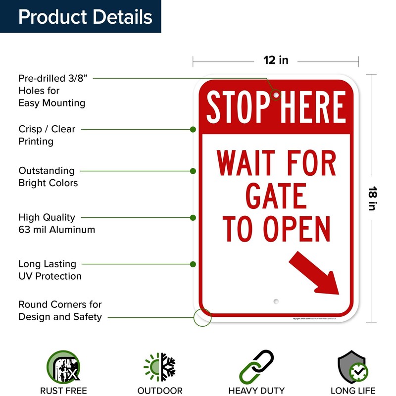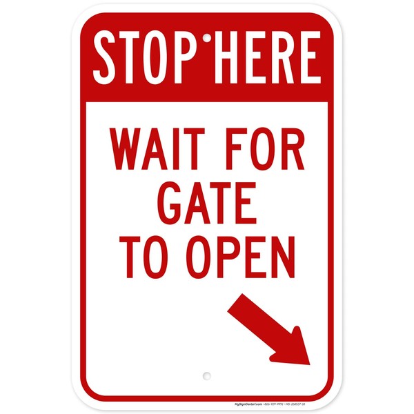Stop Here Wait For Gate To Open With Right Bottom Arrow Sign, 12x18 Inches, Rust Free .063 Aluminum, Fade Resistant, Made in USA by My Sign Center