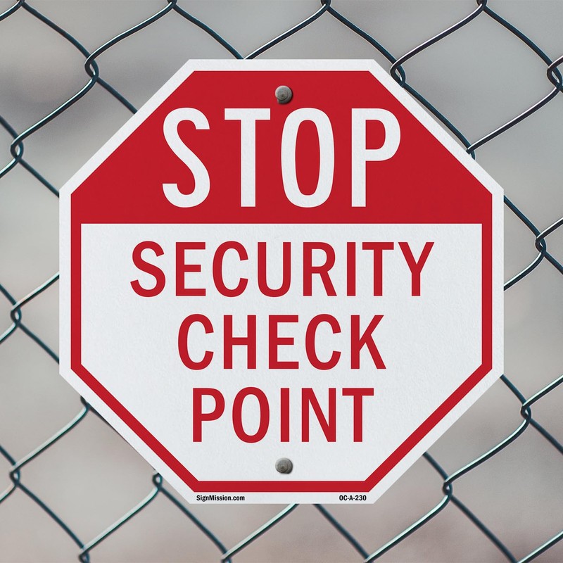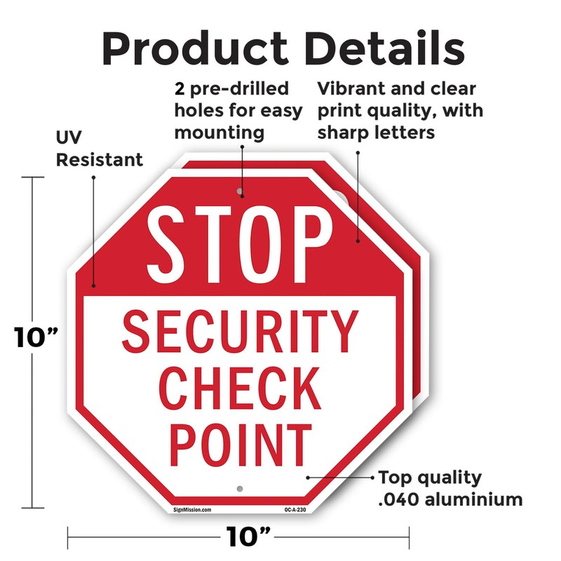 Stop Security Check Point (2 Pack) 10 inch X 10 inch Octagon Rust Free Aluminum Metal Signs Weather Resistant, UV Protected for Workplace, Private Property, and Construction Site, Made in the USA