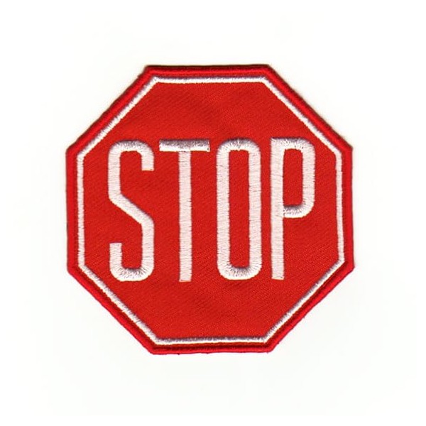 STOP Sign Sew-On or Sew On Patch Iron-On Patch for Clothes Embroidered Iron-On Patch Applique Traffic Sign Patch Size 6.9 x 6.9 cm