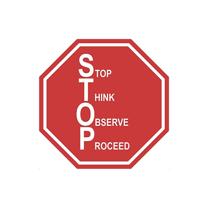 "Stop, Think, Observe, Proceed" Stop Sign- Durable Laminated Vinyl Floor Sign- Sign by Graphical Warehouse- 5S Safety and Security Signage, Visual Communication Tool (30")