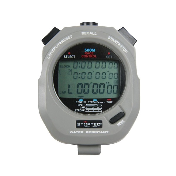 The Stoptec "496" stopwatch has a large 3-line display to display laps, intermediate and running time and stop function. The stroke function stops the time after 3 arms, calculating the number of movements per minute. The last stop lap time and intermediate time remains visible in the display - the running time is permanently displayed in the bottom line.
