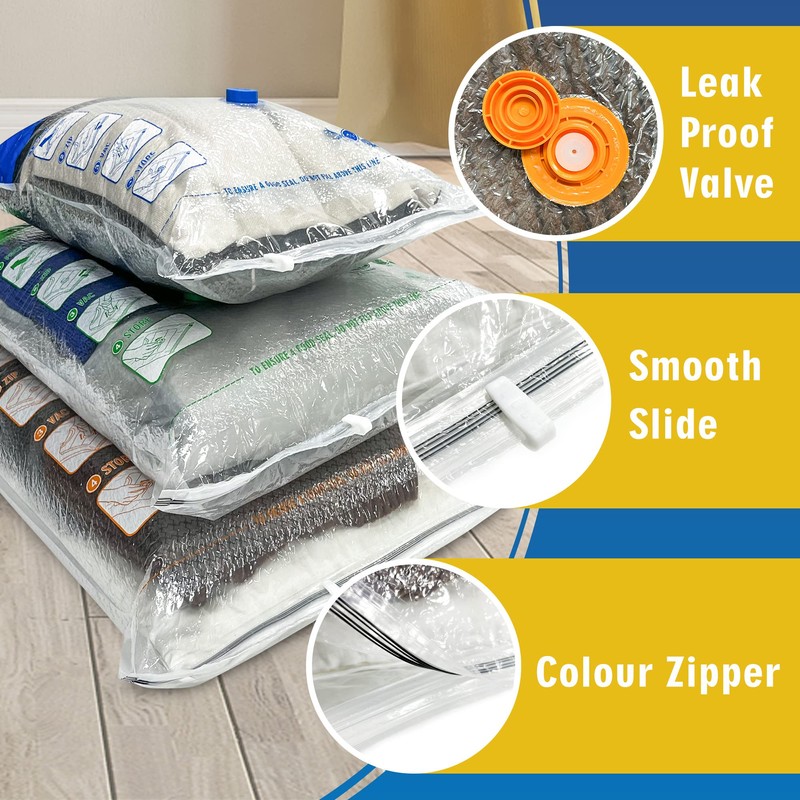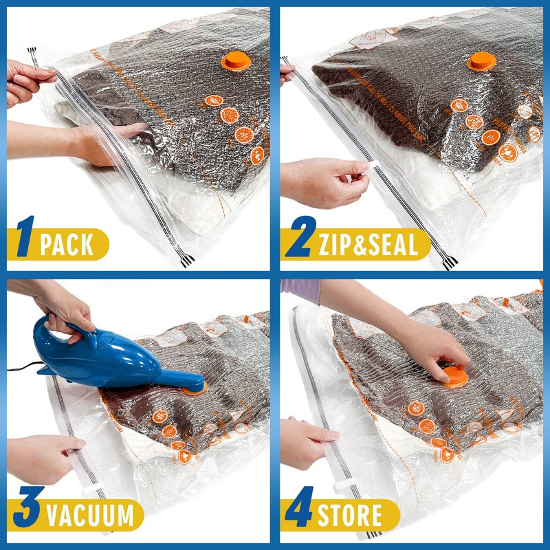 • Secure Vacuum Sealer Bags clothes: these vaccume storage bags have advanced double-zip seal and the triple-seal valve designed to suck every bit of air out and nothing back in.