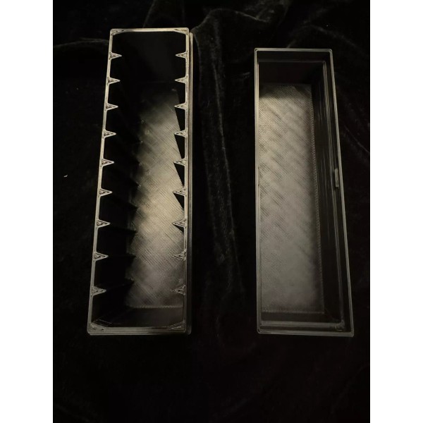 3DP Black Storage Box Holds 10x 10 oz Scottsdale stacker silver bars. Custom designed 3D printed box. Printed in PLA, 3D printed product, you may notice layer lines or imperfections in the surface finish or some stringing, but overall they make for very nice sleek coin protective cases. These are printed to demand, so please allow for some processing time before your order is ready to ship. PLA heat resistance is low and will begin to warp at 60C or 140F. Bars/coins not included.