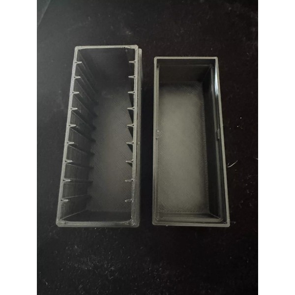 3DP Black Storage Box Holds 10x 5oz APMEX SIZED Silver Bars NOT IN CAPSULES. 61mm x 35mm x 8mm bars. Custom designed 3D printed box. Printed in PLA, 3D printed products you may notice layer lines or imperfections in the surface finish, or some stringing, these are quite normal but overall they make for very nice sleek coin protective cases. These are printed to demand, so please allow for some processing time before your order is ready to ship. PLA heat resistance is low and will begin to warp at 60C or 140F. Bars/coins not included.