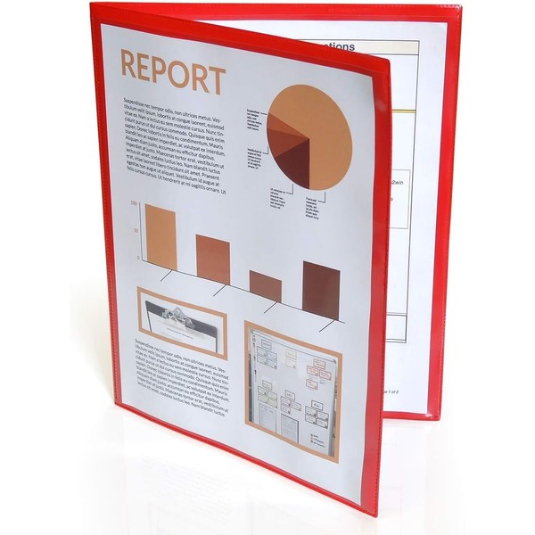- Inside capacity: 8 1/2" x 11". Four visible pages (front, back, and two interior) with colored dividers.