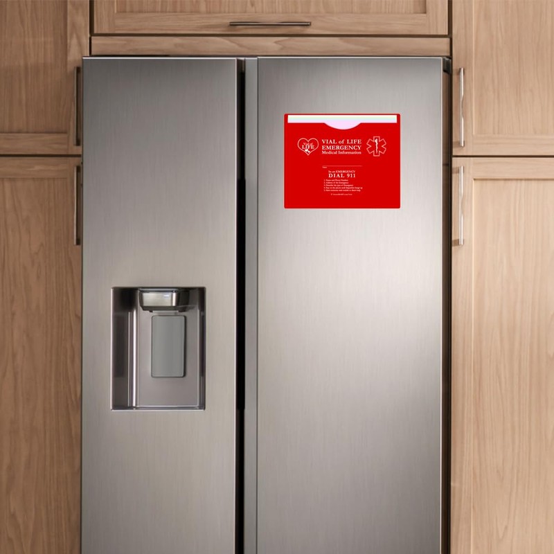 STORE SMART - Vial of Life: Medical Info Pocket - Letter Size - Magnetic Back - 5-Pack - Red - VOLFJ85PQRM-5