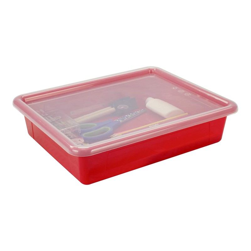 Storex Letter Size Flat Storage Tray â Organizer Bin with Non-Snap Lid for Classroom, Office and Home, Red, 5-Pack (62537A05C)