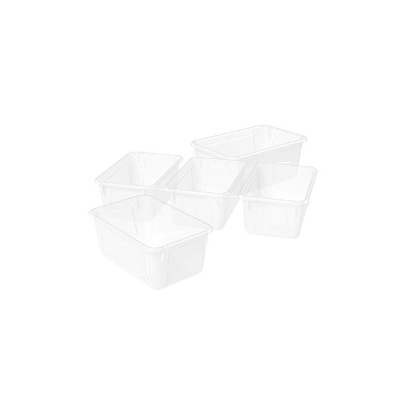 Storex Small Cubby Bins – Plastic Storage Containers for Classroom, 12.2 x 7.8 x 5.1 inches, Translucent, 5-Pack (62461A05C)