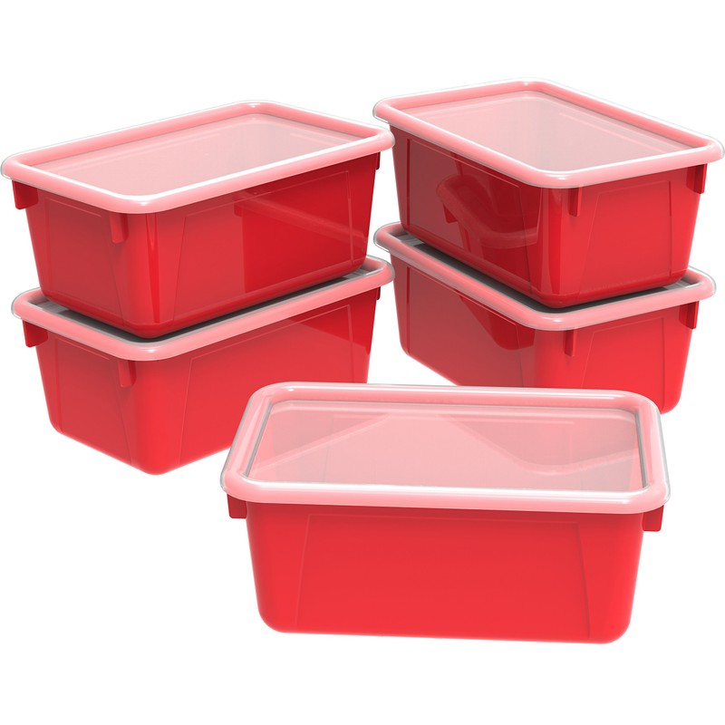 Storex Small Cubby Bins – Plastic Storage Containers for Classroom with Non-Snap Lid, 12.2 x 7.8 x 5.1 inches, Red, 5-Pack (62407U05C)